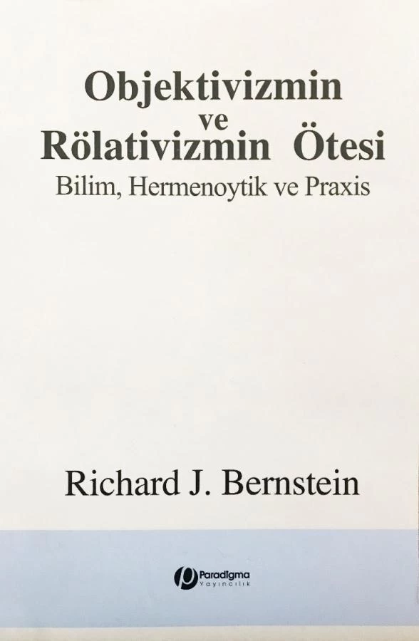 “Yazmak benim için her zaman bir keşif yolculuğu olmuştur.” diyor Richard J. Bernstein bu kitabında. Bu keşif yolculuğunun Objektivizmin ve Rölativizmin Ötesi’ndeki ana uğrakları Kartezyenizm, post-empirisist bilim felsefesi ve tarihi, sosyal bilim fikri, hermenoytik, bilim ve praxis; Peter Winch, Thomas Kuhn, Karl Popper, Feyerabend, pragmatizm ve Rorty, Frankfurt Okulu ve Habermas, Arendt… Descartes’tan James’e, Heidegger’den Wittgenstein’a Anglo-Amerikan ya da Anglo-Sakson düşünce geleneği ile Kıta Avrupası düşünce geleneği arasında zorlu ve çetin bir keşif yolculuğu.